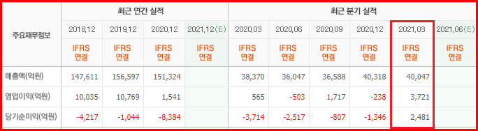 물론 신사업의 기대감과 재무구조 회복 노력도 주가에 영향을 주고 있는 것도 사실이지만 현상황은 실적보다는 기대감에서 나온다는 평가가 많은 만큼 투자에 더욱 신중하시는 게 좋을 것 같습니다.