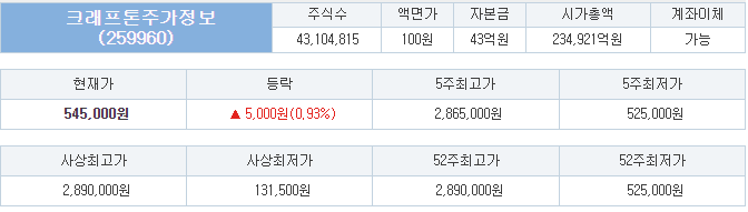 크래프톤 장외 가격이 매우 높게 형성되어 있습니다.