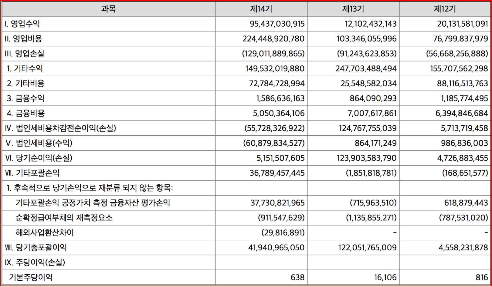 14기가 2020년인데 제작년 대비 영업이익이 크게 상승했다는 것을 알 수 있습니다.